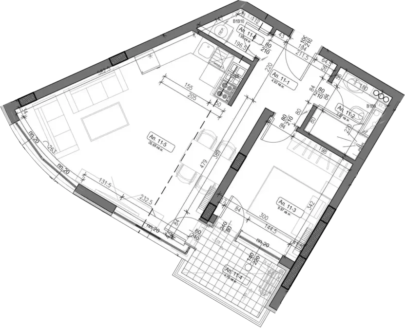 Апартамент – дневна с кухненски бокс, спалня, баня с тоалетна и тераса.