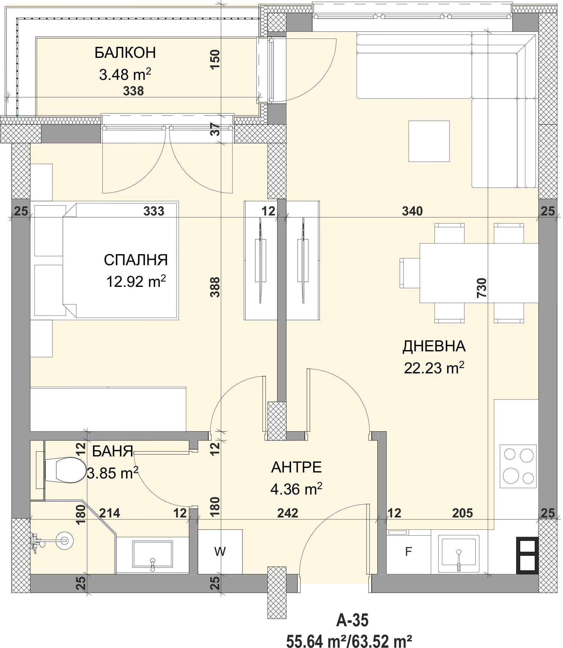 Обща площ 63,52 m2