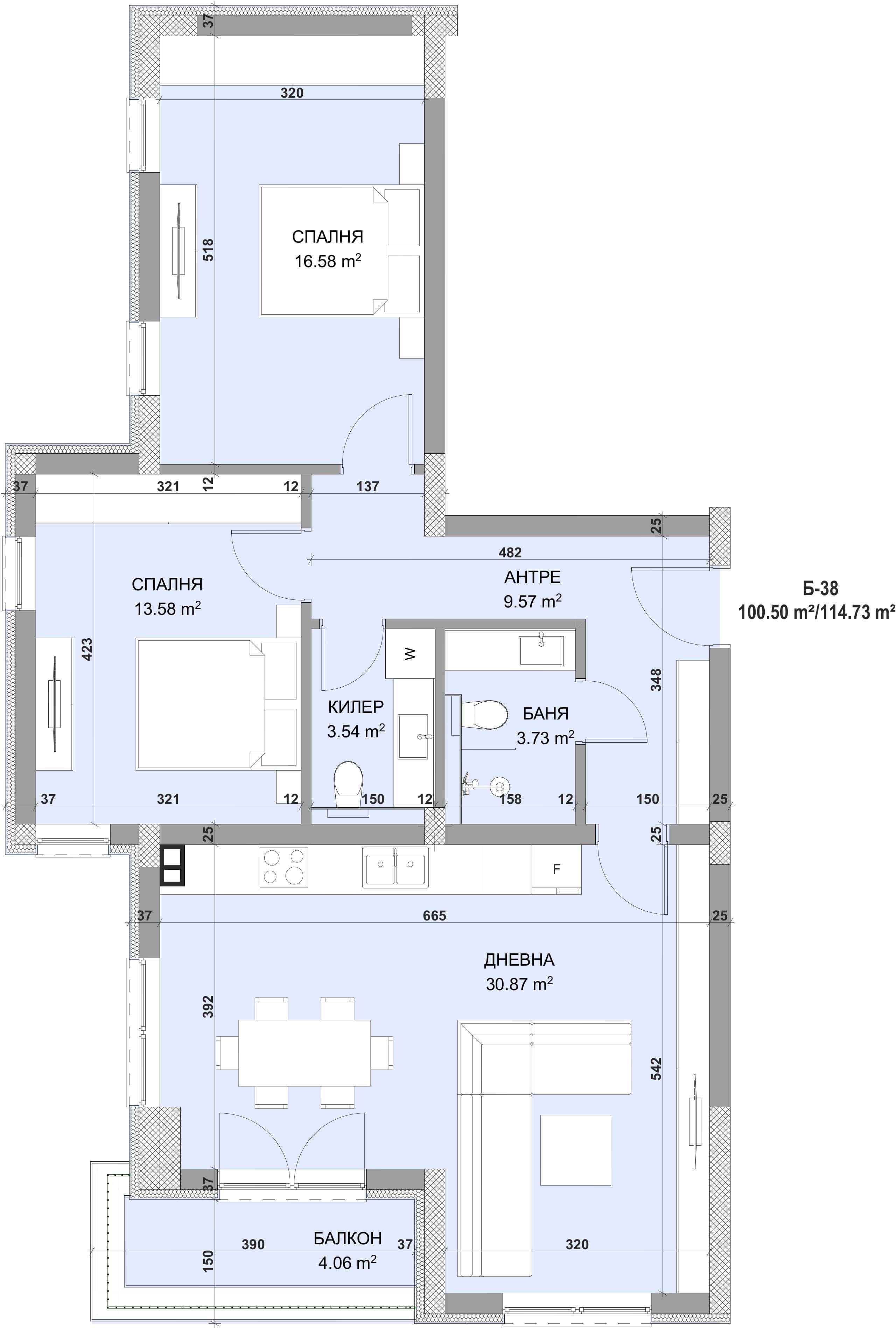 Обща площ 114,73 m2