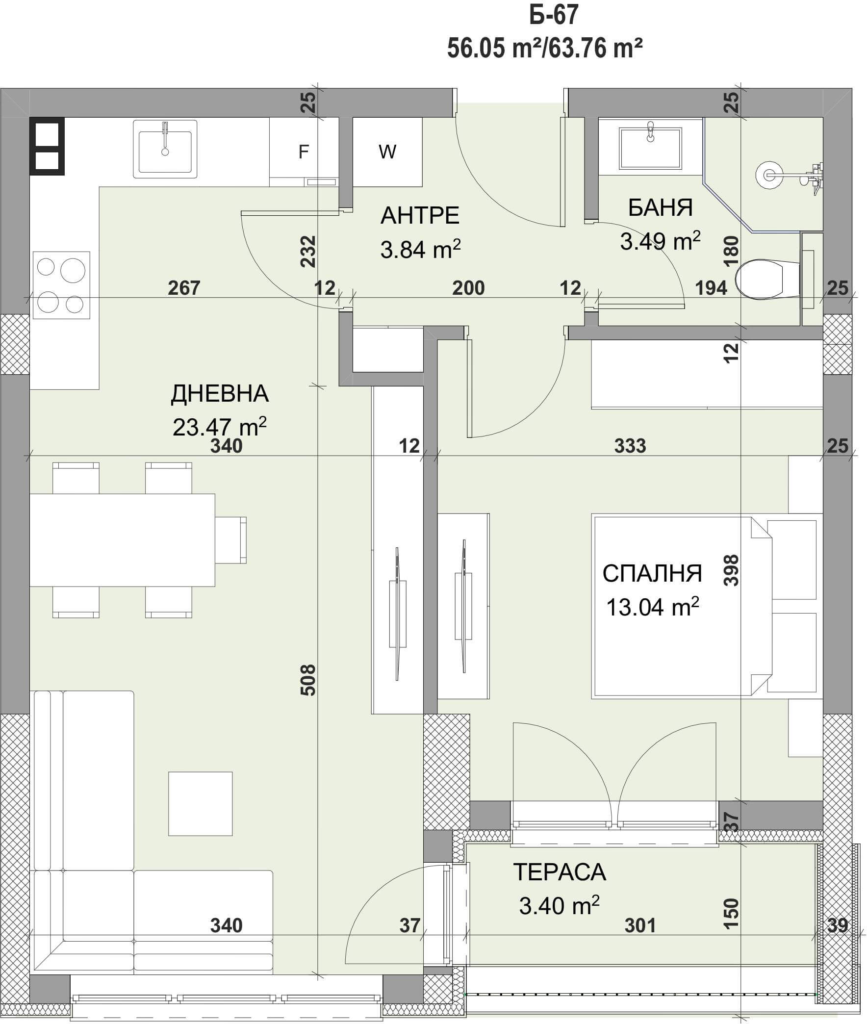 Обща площ 63,76 m2