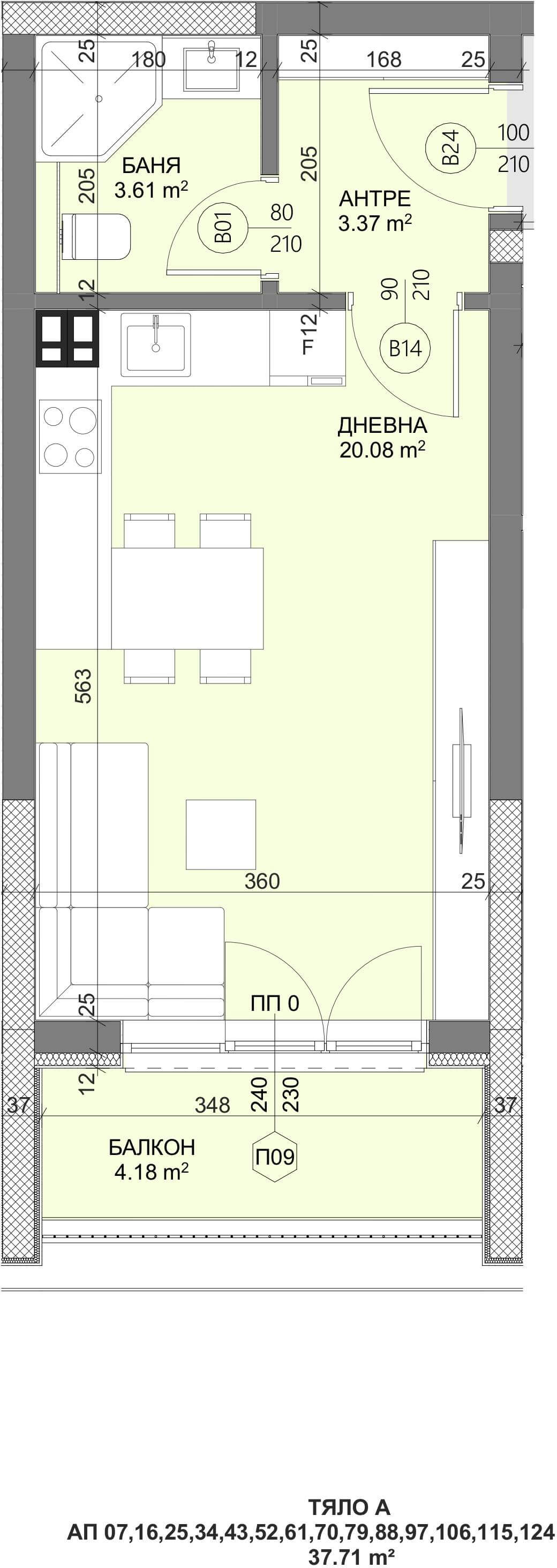 Чиста площ 37,71 m2